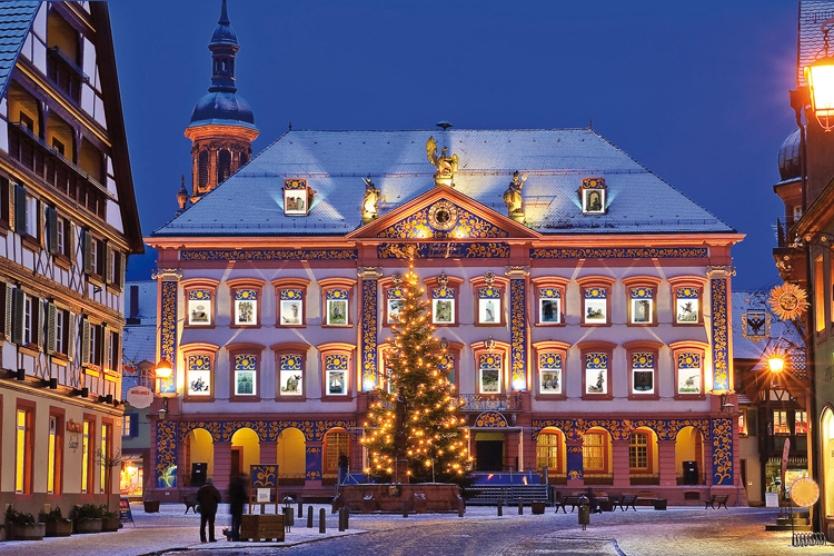 Einer der größten Weihnachtsbäume Deutschlands und ein besonderes Ambiente - darauf kann man sich in der Residenzstadt im Odenwald freuen. Residenzschloss, historischer Bergfried, Stadtkirche und malerisches Fachwerk vermitteln mit den bunt geschmückten Ständen und dem Lichtermeer einen stimmungsvollen Eindruck. An den Adventswochenenden locken zudem Sonderführungen im Residenzschloss. Die Erbacher Schlossweihnacht ist geöffnet an allen vier Adventswochenenden.